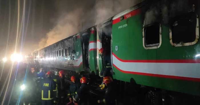 বগির ভেতর থেকে বেনাপোল এক্সপ্রেসে আগুন লাগানো হয়