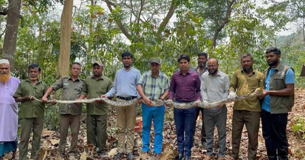 কাপ্তাইয়ে হাঁসের খামারে ধরা পড়ল ১৪ ফুটের অজগর
