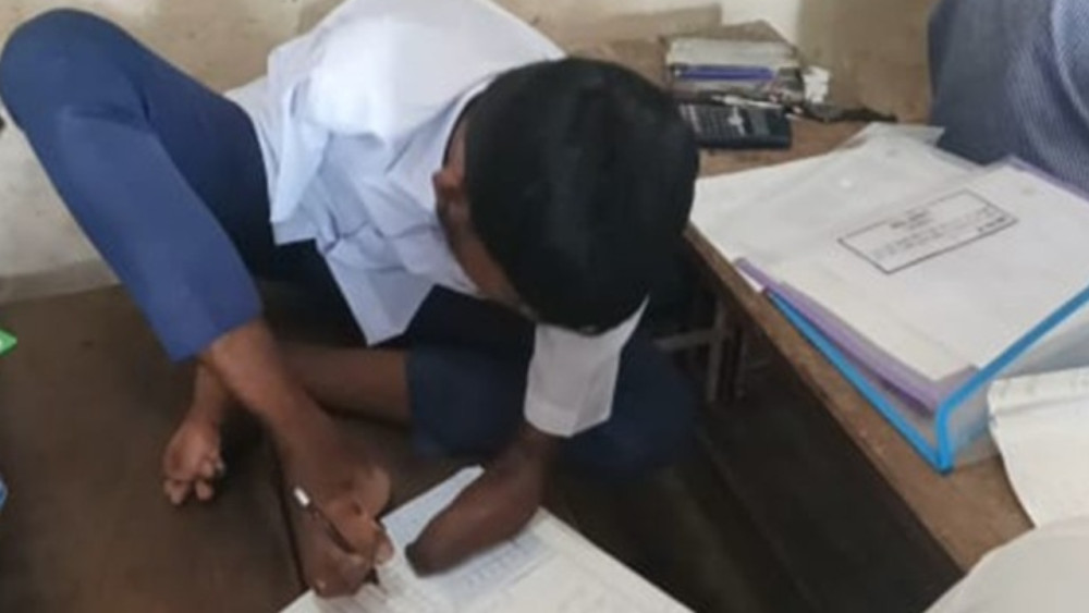 দুই হাত নেই, পা দিয়ে লিখে অদম্য রাব্বির সফলতা