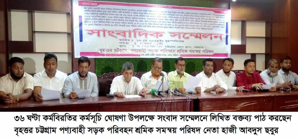 চট্টগ্রামে ১৯ মে থেকে পণ্যবাহী সড়ক পরিবহন শ্রমিকদের ৩৬ ঘণ্টার কর্মবিরতি