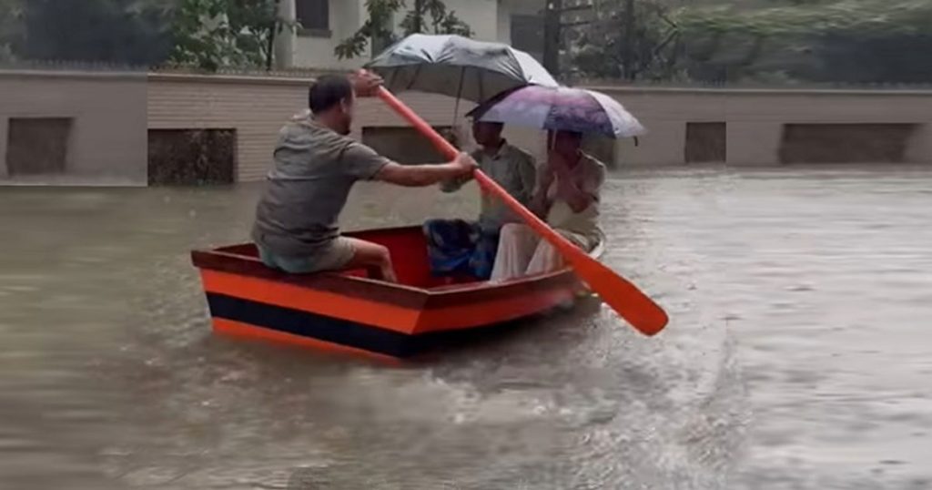 চট্টগ্রামের কাতালগঞ্জে ডুবে যাওয়া রাস্তায় চলছে নৌকা!