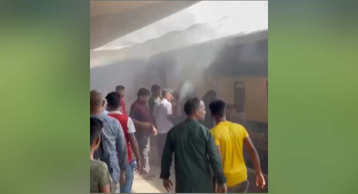কমলাপুর স্টেশনে চট্টলা এক্সপ্রেস ট্রেনে আগুন