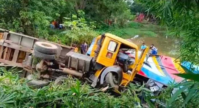 মিরসরাইয়ে মালবোঝাই লরির ধাক্কায় বাস খাদে, আহত ১৫