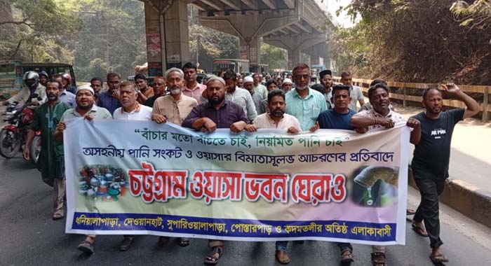 চট্টগ্রাম ওয়াসার সামনে নিরবচ্ছিন্ন পানির দাবিতে গ্রাহকদের বিক্ষোভ