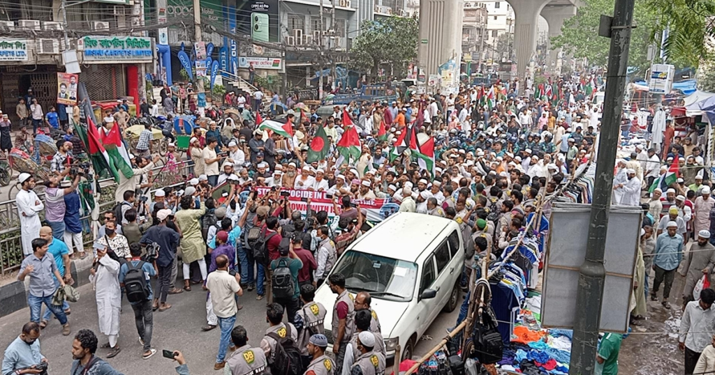 ফিলিস্তিনে হামলার বিচার দাবিতে রাজধানীতে বিক্ষোভ মিছিল