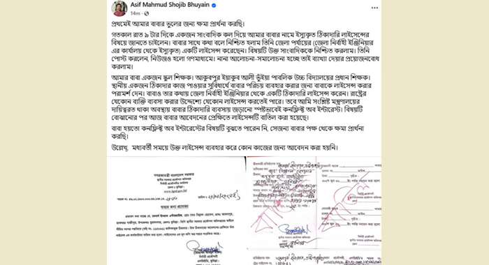 বাবার ভুলে ক্ষমা চাইলেন উপদেষ্টা আসিফ মাহমুদ