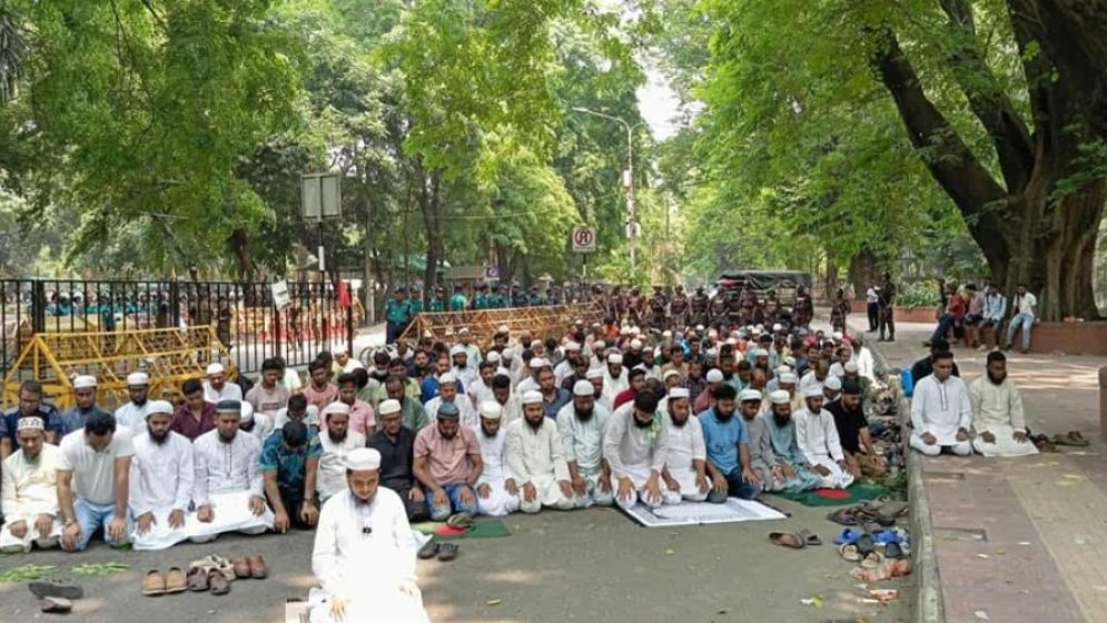 প্রধান উপদেষ্টার বাসভবনের সামনে বিক্ষোভকারীদের জুমার নামাজ আদায়