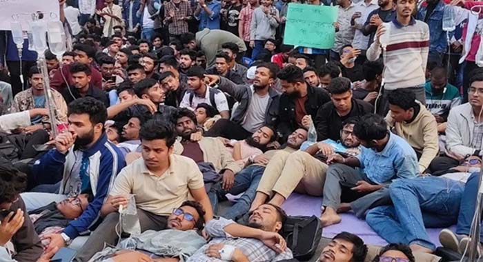 দ্বিতীয় দিনেও অনড় অবস্থানে জবি শিক্ষার্থীরা