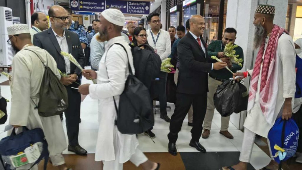 হজশেষে প্রথম ফ্লাইটে দেশে ফিরেছেন ৩৬৯ হাজি