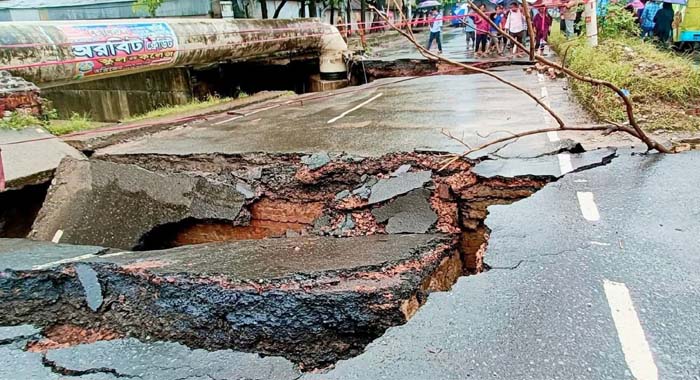 ভারী বর্ষণে অক্সিজেনে সেতু ভেঙে যান চলাচল বন্ধ