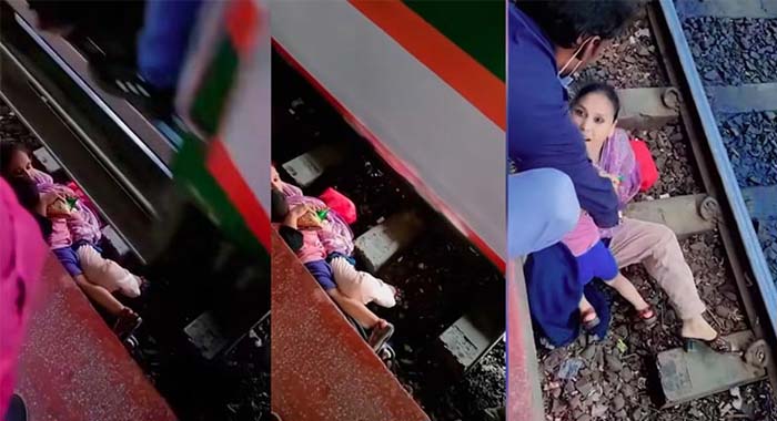 শিশুসহ ট্রেনের নিচে পড়লেন নারী, এরপর যা হলো!