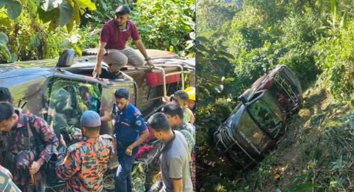 সাজেকে বিজিবির গাড়ি নিয়ন্ত্রণ হারিয়ে পাহাড়ি খাদে