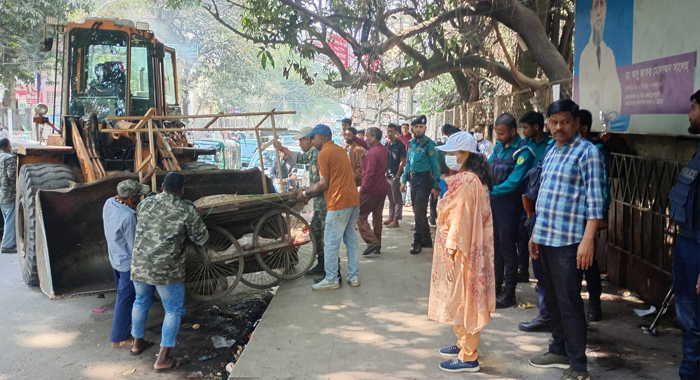 চকবাজার এলাকায় অভিযান চালিয়ে ৬০ টি অস্থায়ী দোকান উচ্ছেদ