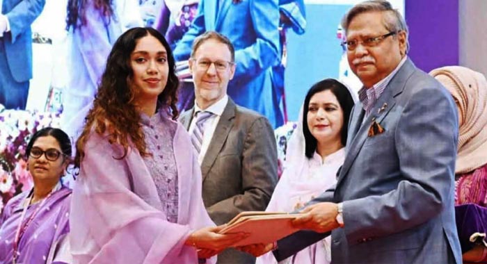 খালেদা জিয়ার পক্ষে অদম্য নারীর পুরস্কার নিলেন নাতনি জায়মা রহমান